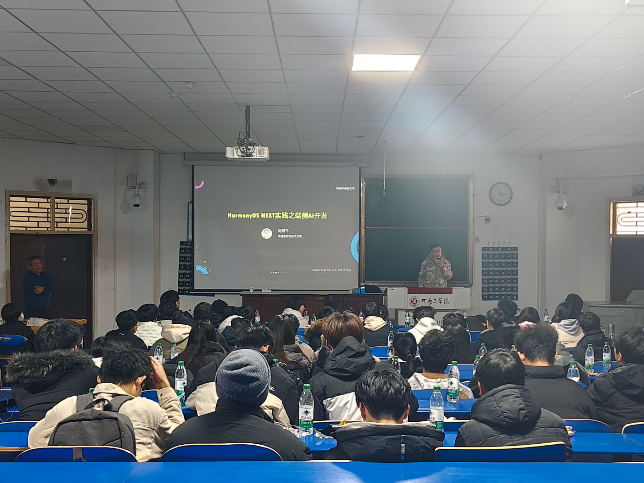 为使广大学生更深入地认识华为技术生态系统,特别是最新推出的HarmonyOS NEXT操作系统,助力其职业发展规划,我校于12月15日下午在4号教学楼101室隆重举行“生态赋能,智享未来-HarmonyOS探索之旅”活动。华为公司前端架构师刘朋飞应邀出席本次活动,我校百余位学子齐聚一堂,聆听分享。