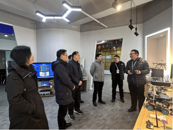 在郑州盈达电子有限公司执行董事周中孝的陪同下,学院领导与公司教研经理伦砚波、工程师霍文光、王俊玉等进行了深入交流。通信09级校友伦砚波和公司技术人员霍文光详细介绍了公司的主营业务及近年来的研究成果,展示了公司在电子信息领域的技术创新与应用实践。