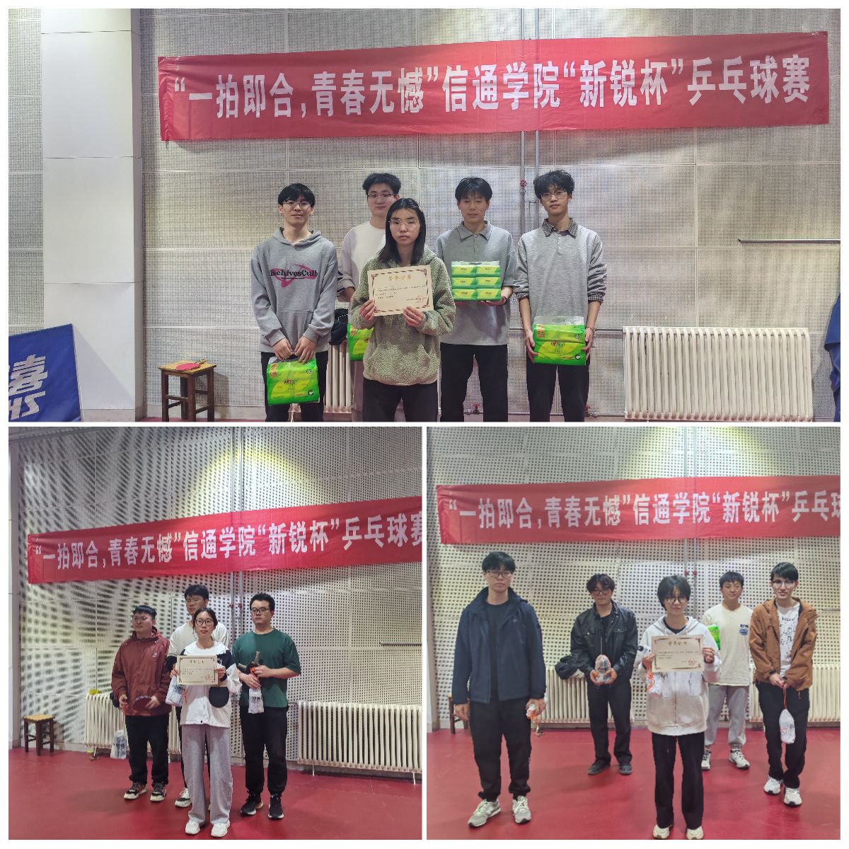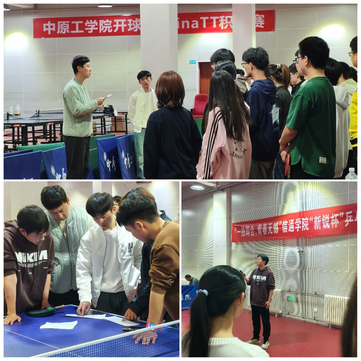 为丰富校园文化生活,增强班级凝聚力,弘扬我国国球文化,williamhill英国于2025年4月1日,在龙湖校区体育馆成功举办“新锐杯”乒乓球团体赛。