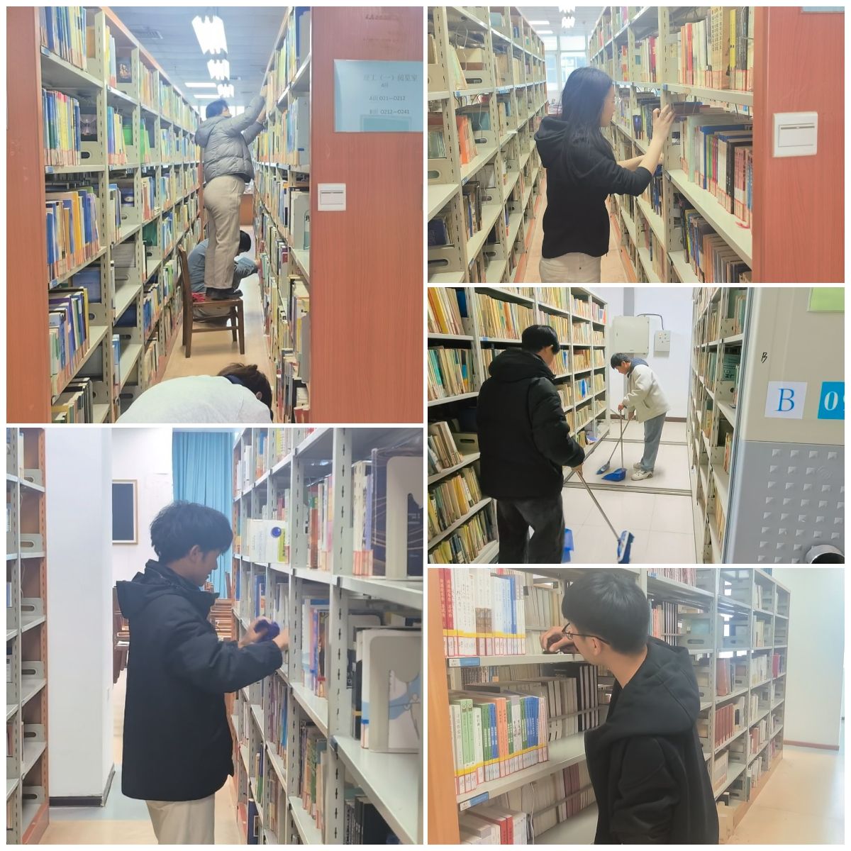 活动开始前,同学们准时在图书馆门口集合。在带队老师的安排部署下,大家迅速明确分工、各就各位,有序地投入到清洁工作之中。打扫过程中,大家展现出了高度的责任感和团队协作精神。有的负责仔细擦拭阅览书架,不放过任何一个角落;有的专注清理桌面杂物,让桌面变得整洁干净;还有的认真整理摆放凌乱的书籍,使书架上的书籍排列得整齐有序。同时,大家也没有忽略地面和角落的卫生,对其进行了细致的清扫,确保阅览室的每一处都一尘不染。